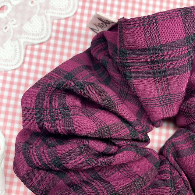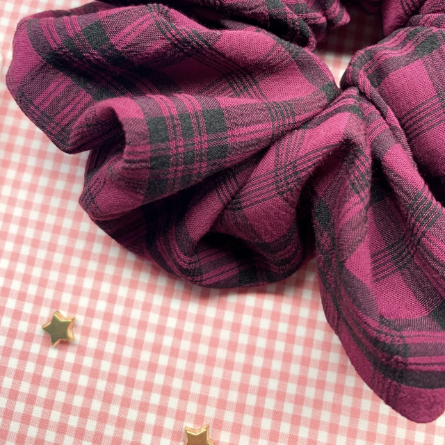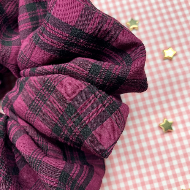 Autumn is here and so are the colours to match. Add that cosy days vibe to your autumnal outfits with this gorgeous burgundy and black check jumbo scrunchie. These scrunchies are double the fabric as normal scrunchies but the same size elastic, giving your scrunchie extra volume and presence!