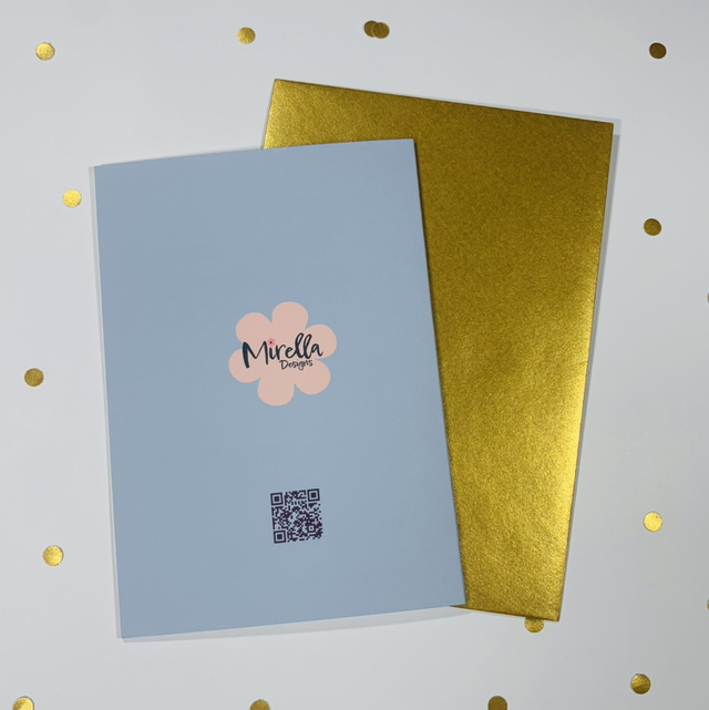 Blank inside so you can write your own message, comes with a shiny gold envelope and is 100% original