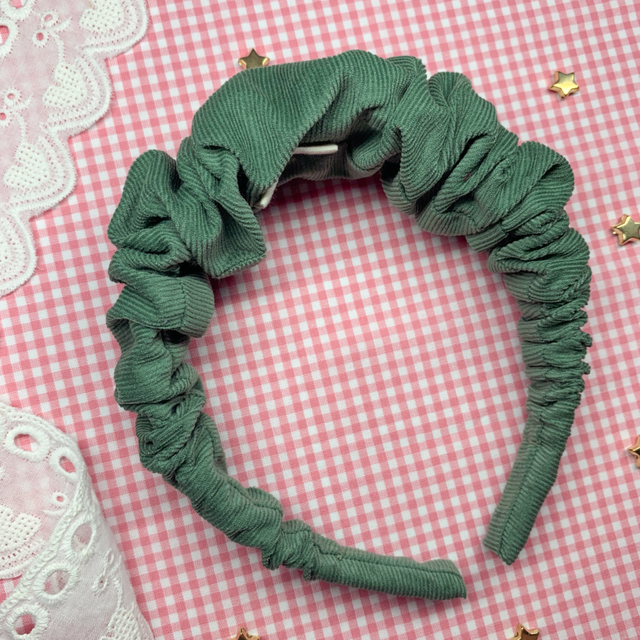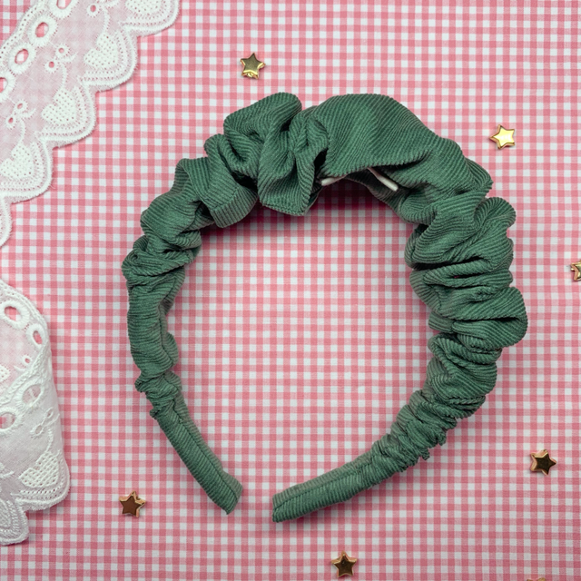 A headband with volume and style. This ruffle headband is perfect for autumnal walks. Made from needlecord just adds to its cosy vibes