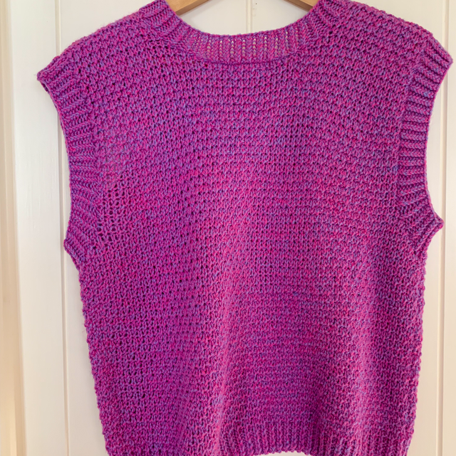 Pink & Purple Knitted Sweater Vest - Size Medium (12-14)