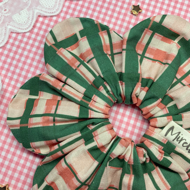 Retro Check Flower Scrunchie