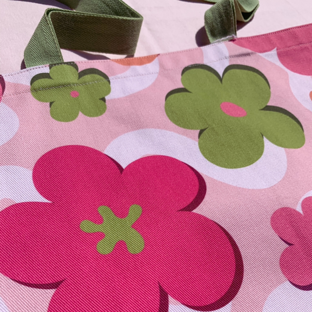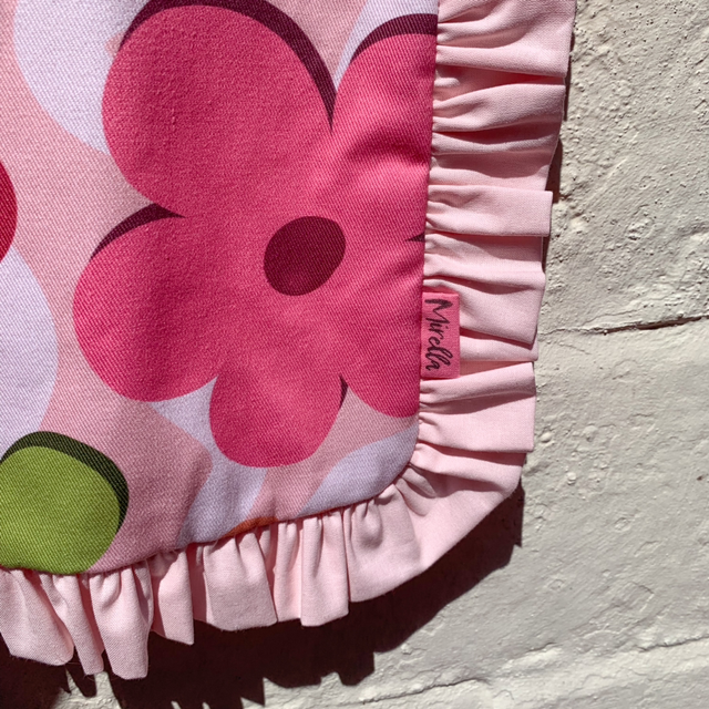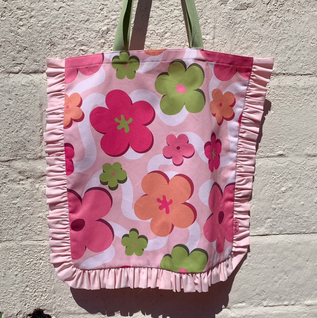 One of a kind summer frill tote bag! Made from 100% cotton twill with a cotton pink frill